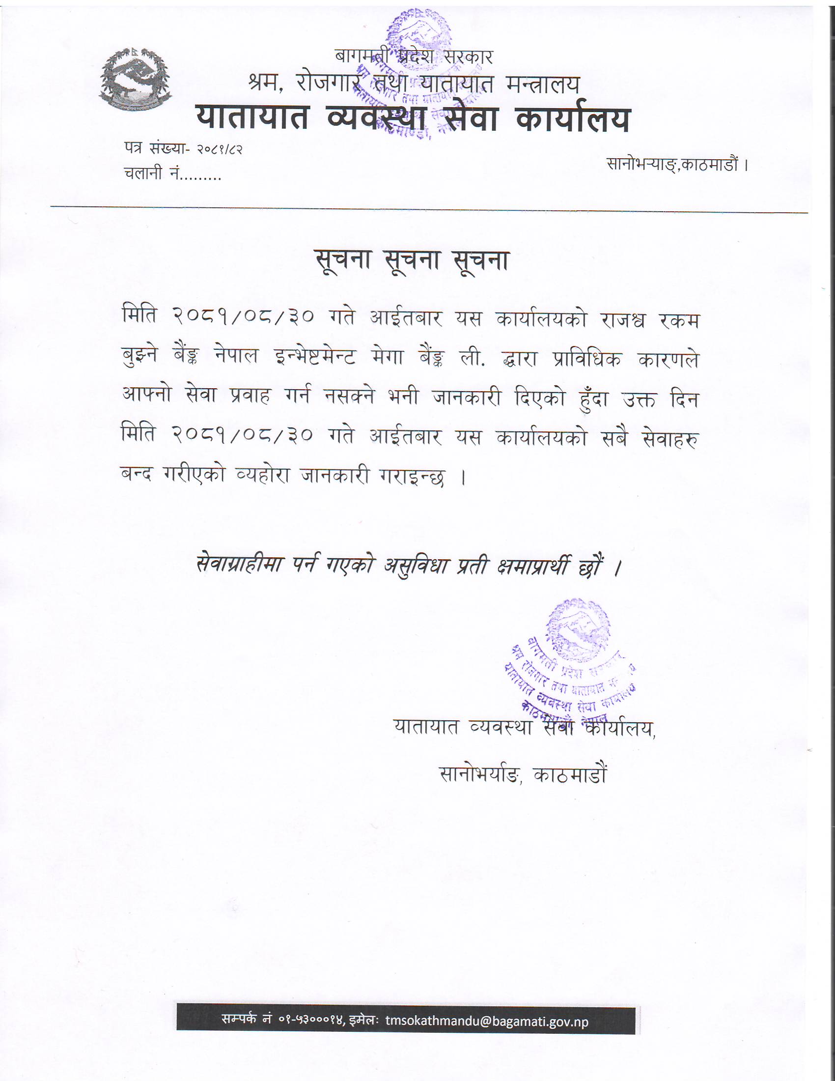 © सर्वाधिकार सुरक्षित यातायात व्यवस्था सेवा कार्यालय, सानोभर्याङ्ग